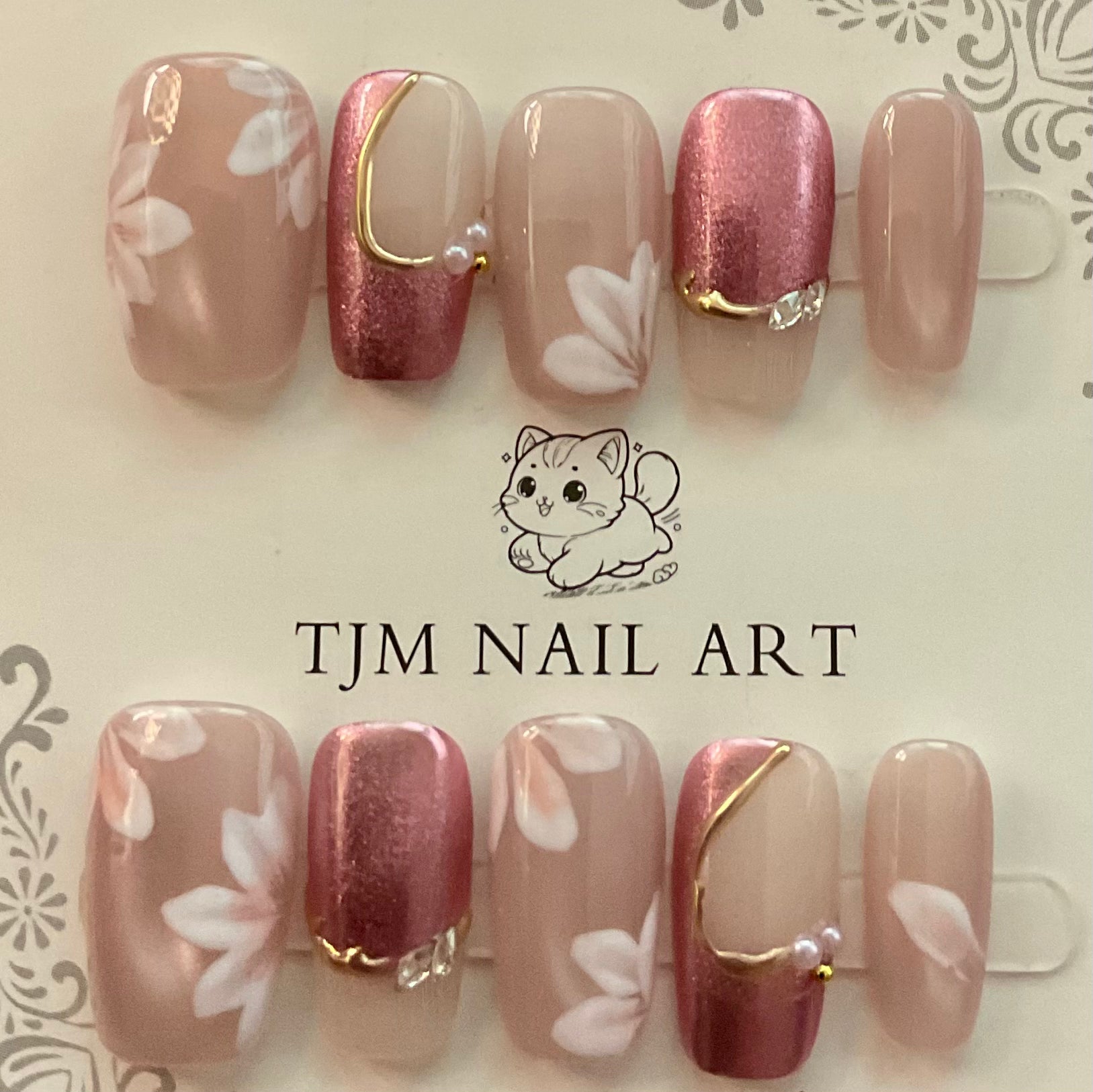 Add a touch of charm to your look with these Blush Petals & Rose Gold Press On Nails. Featuring a soft blush base adorned with delicate floral accents and sparkling rose gold details, they bring a playful elegance to your fingertips. Easy to apply and perfect for any occasion, these nails let you bloom in style wherever you go.