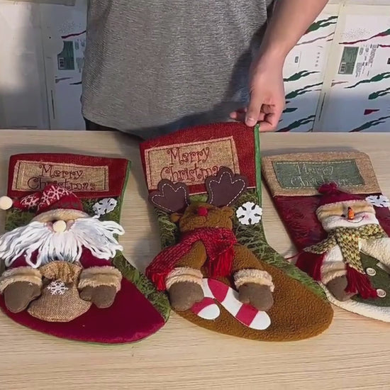 2. High quality material Christmas socks: These Christmas stockings are made of high-quality Burlap, fluff, non-woven fabrics. All details are incredible crafted, perfect for filling with a range of gifts.Great for Mom and Dad, Grandpa and Grandma and your favorite Little Boy or Girl. Christmas will be jolly with this fun and adorable stocking. Come and get your unique Christmas stocking!