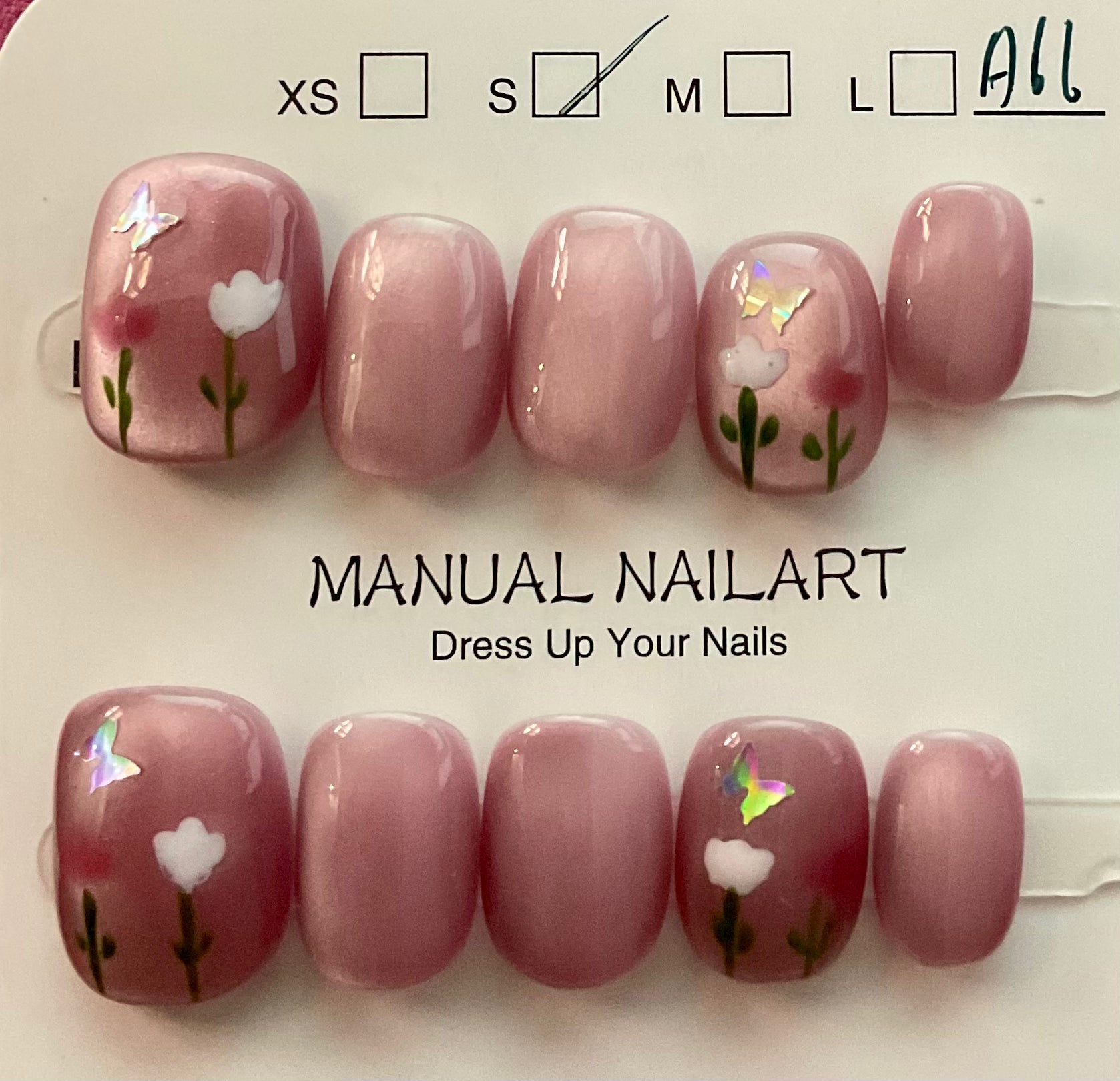 Add a touch of springtime whimsy to your look with these Floral Pink Butterfly Press On Nails. Featuring a charming pink base adorned with delicate flowers and butterfly accents, they bring a playful and fresh vibe to your fingertips. Easy to apply and perfect for any occasion, these nails let you flutter through your day in style.