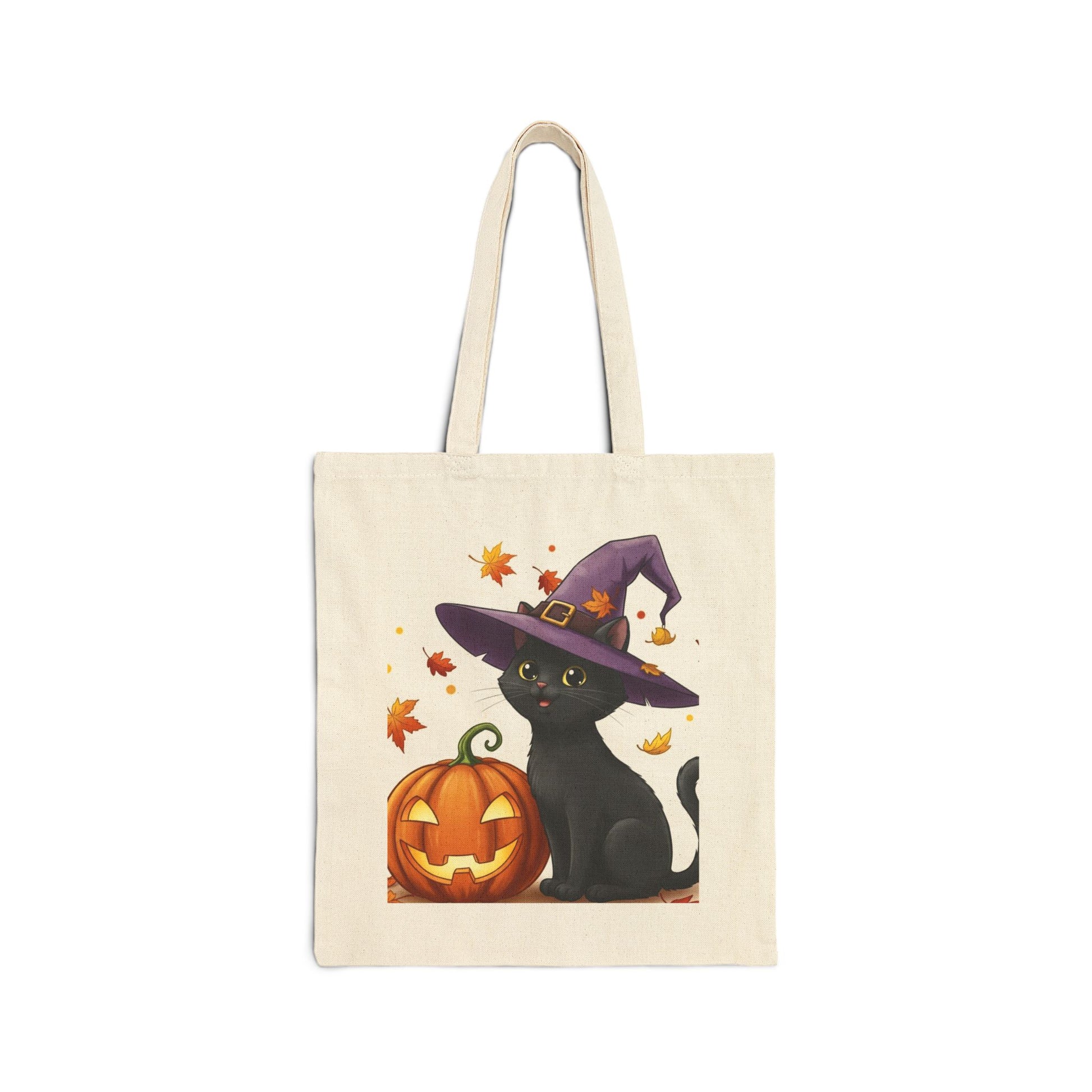 This charming Cotton Canvas Tote Bag is perfect for embracing the festive spirit of Halloween. Adorned with whimsical designs featuring playful black cats and pumpkins, it adds a delightful touch to your autumn wardrobe. Made from durable 100% cotton canvas, this bag is not just stylish but also practical, ideal for carrying your essentials during trick-or-treating, Halloween parties, or everyday outings. It's a perfect gift for cat lovers and those who enjoy celebrating the spooky season. This tote is great for various occasions such as Halloween, fall festivals, and casual outings, making it a versatile addition to any collection.
